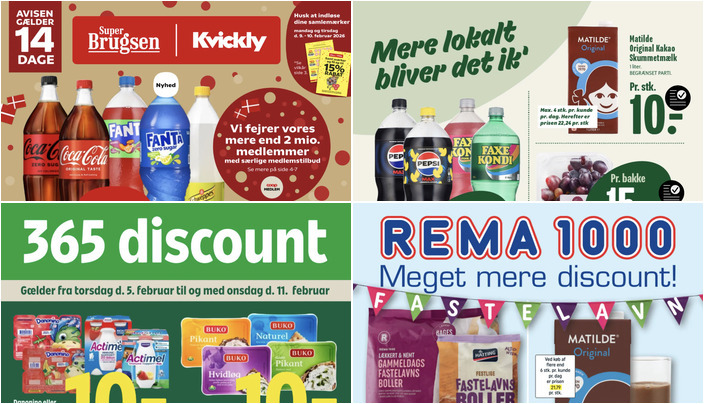 Coop365 tilbyder Danonino eller Actimel til en skarp pris af 10 kr. pr. stk. med en vægt på 300-400 g. Tilbuddet gælder fra torsdag 5. februar til onsdag 11. februar.